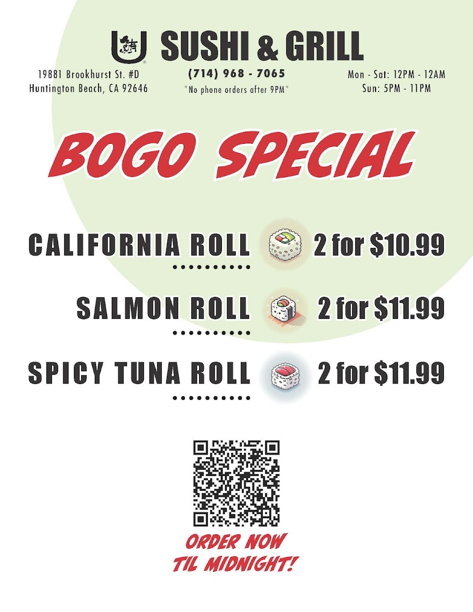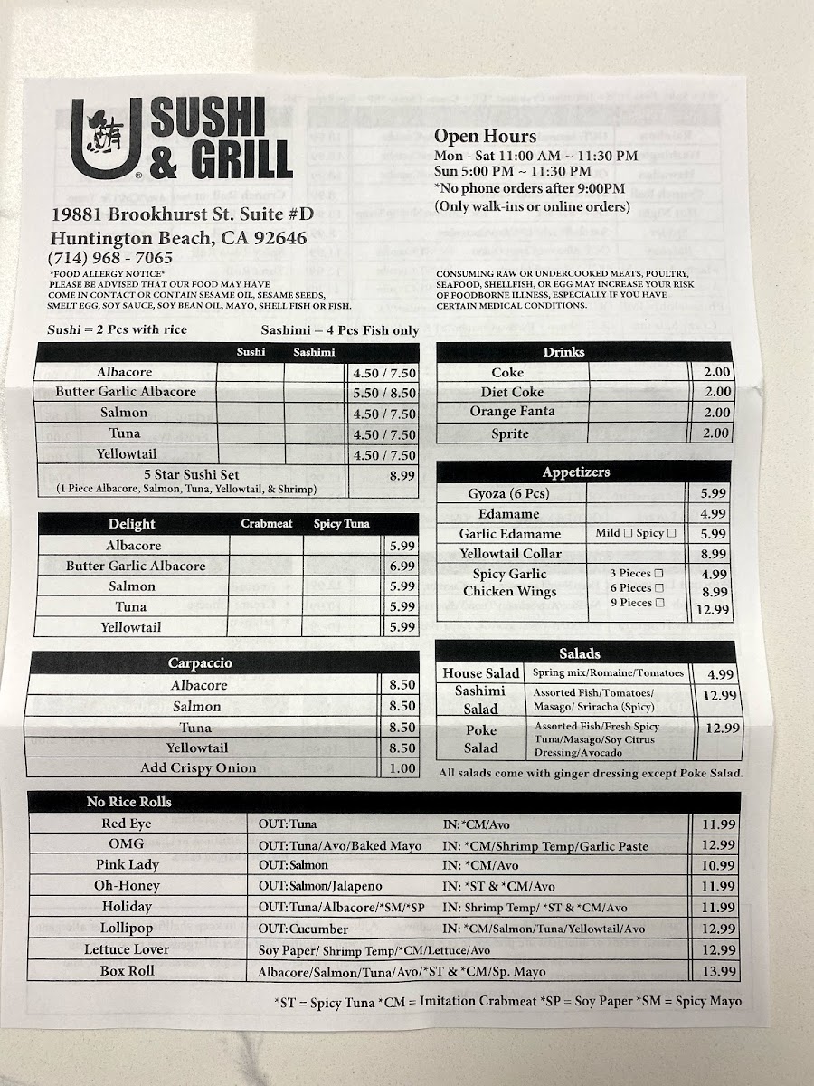 Welcome to U Sushi & Grill, a hidden gem in Huntington Beach, CA, where Asian culinary traditions meet modern flavors. This vibrant spot offers an impressive menu that features not only exquisite sushi but also mouthwatering wings. Guests rave about the freshness of the fish, making the yellow tail sashimi and the standout Hungry Bear Roll absolute must-tries.
